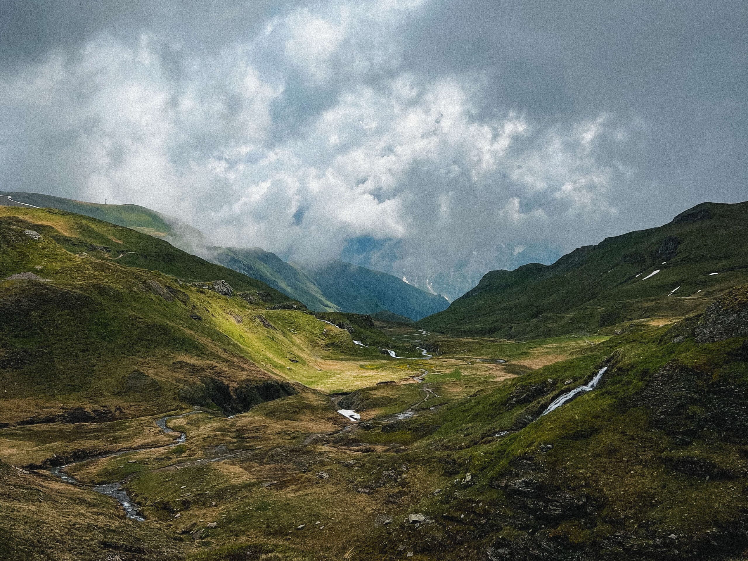 Jagged peaks rise all around us, their snow-dusted slopes glowing in the afternoon light. For the first time all day, we see why this place is so beloved. The drama, the scale, and the raw beauty of the Alps finally stretch out in front of us, and we stand still for a while, just taking it all in.